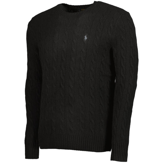 Crewneck jumper by Ralph Lauren crafted in a wool/cashmere blend. The lightweight knit features a cable-knit design with ribbed trims and the signature polo pony logo embroidered to the chest.