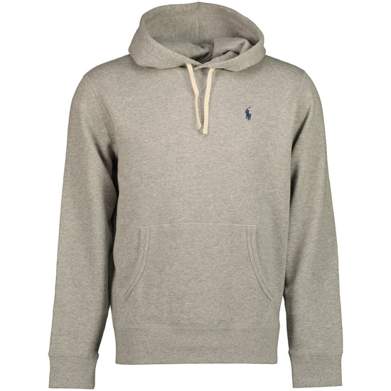 Classic hooded sweatshirt by Ralph Lauren in a cotton/polyester blend fleece. The hoodie features a drawstring hood with a rib-knit V-inset, front kangaroo pocket & an embroidered pony logo to the chest.