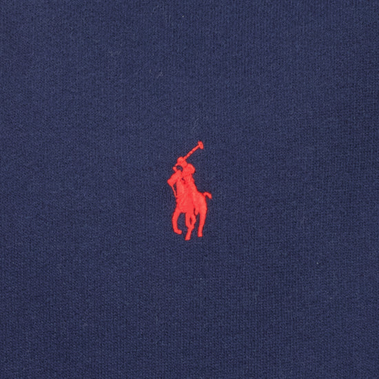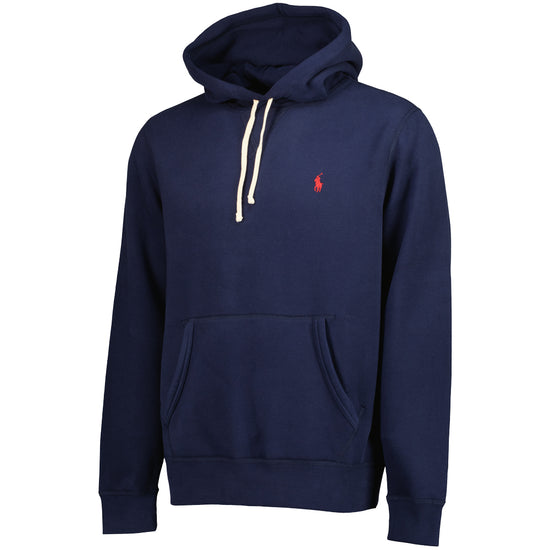 Classic hooded sweatshirt by Ralph Lauren in a cotton/polyester blend fleece. The hoodie features a drawstring hood with a rib-knit V-inset, front kangaroo pocket & an embroidered pony logo to the chest.