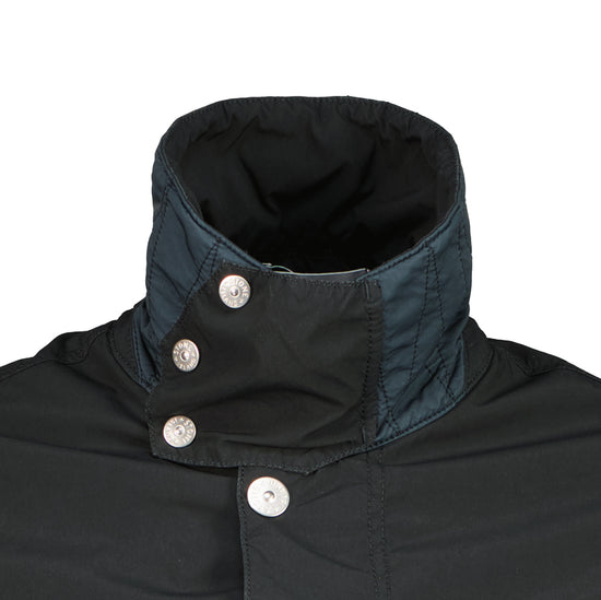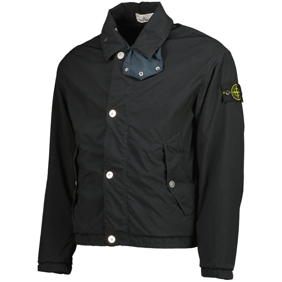 Coach jacket by Stone Island in lightweight polyester canvas with a matt appearance & anti-drop finish. The jacket features a triangular chin strap, snap button hand pockets, full two-way zip & snap button closure & the signature removable compass logo patch to the left sleeve.