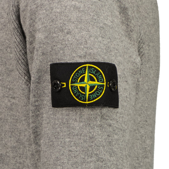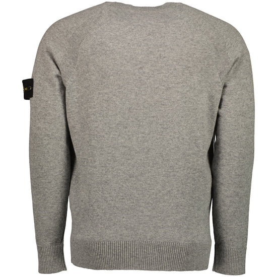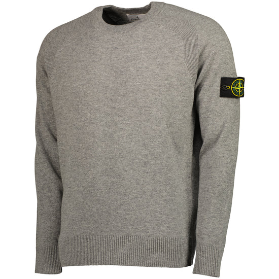 Knitted crewneck jumper from Stone Island in light RWS Geelong wool. This loose fitting jumper features a ribbed crewneck, cuffs & hem, raglan sleeves with ribbed bands & the signature removable Stone Island Compass logo patch to the left sleeve.