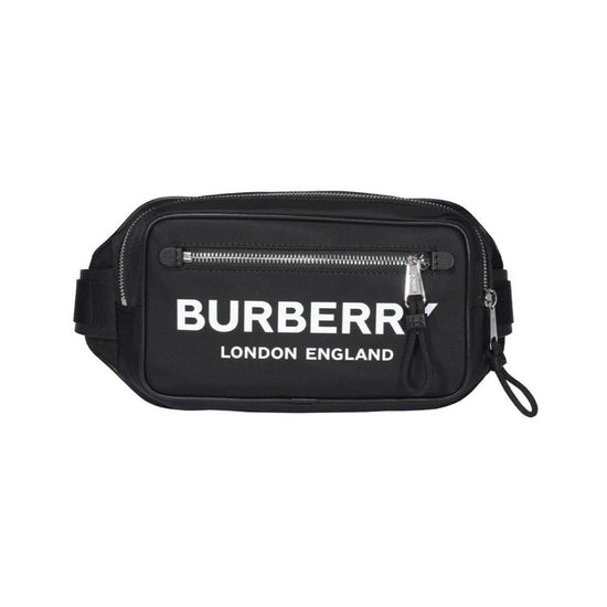 Belt bag from Burberry in ECONYL® with leather trim & detailed with the brand's logo. The bag has an adjustable belt strap with, a front zip pocket and a larger zipped main compartment. Carry it crossbody, by the strap or around the waist.