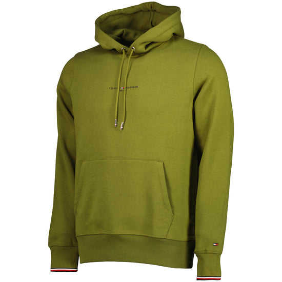 Hooded sweatshirt by Tommy Hilfiger in a cotton blend flex fleece. This regular fitting hoodie features a drawstring adjustable hood, front kangaroo pocket, tipped cuffs & branding to the left sleeve and chest.