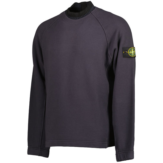 Crewneck sweatshirt by Stone Island in organic cotton diagonal fleece & garment dyed. The sweat features a ribbed knit insert inside the neckline, overlock seams & the signature removable compass logo patch to the left sleeve.