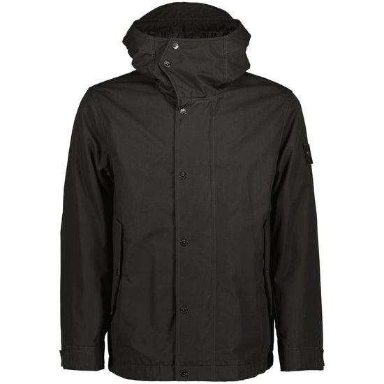 Hooded parka from Stone Island crafted in tightly woven organic cotton for increased resistance to the elements. This weatherproof jacket features quilted lining, concealed full two way zip fastening, slanted hand pockets with snap button flaps, a padded hood with visor & the iconic monochrome Stone Island Ghost patch to the left sleeve.